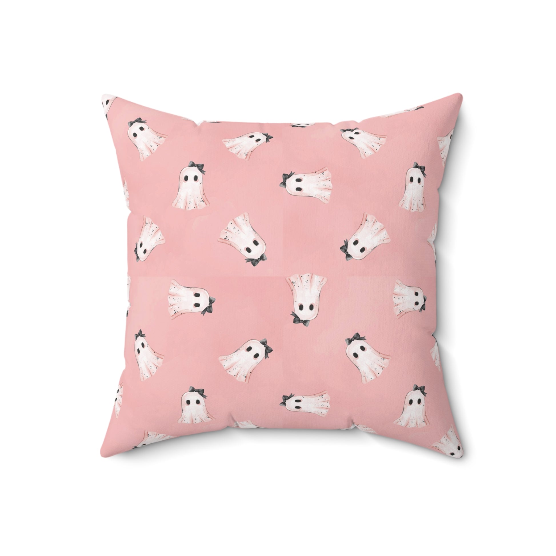 Cute and spooky, this pink ghosts throw pillow makes the perfect Halloween accent with year-round charm. Pair it with the optional matching throw blanket for a complete set (and automatically get $4.99 off). Also available in orange for a festive Halloween vibe.